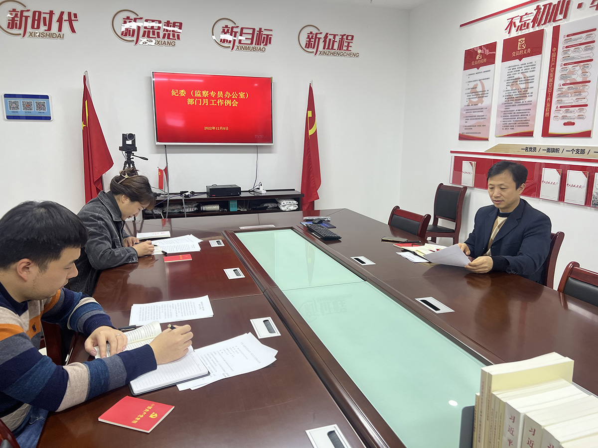 12月8日上午,紀(jì)委(監(jiān)察專員辦公室)在黨員活動(dòng)室召開部門工作例會(huì),梳理總結(jié)2022年全年工作并對(duì)歲末年初工作進(jìn)行部署。