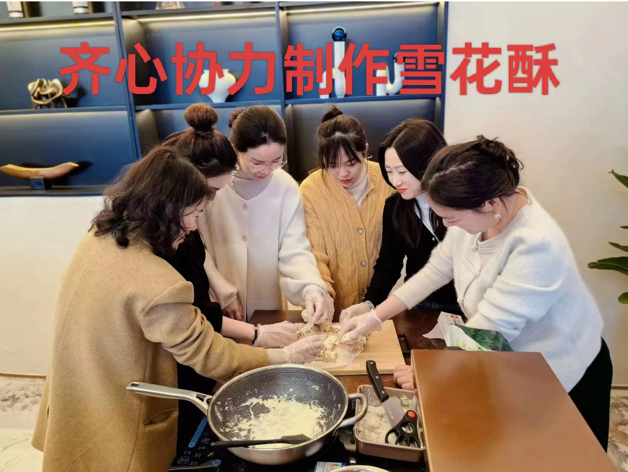 此次活動邀請了華潤物業(yè)專業(yè)烘焙老師現(xiàn)場授課,活動一開始烘焙老師詳細為大家講解烘焙工具的使用、烘焙食材的搭配比例,還熟練的進行了操作演示。隨后參加活動的女職工們在老師的耐心指導下,開始動手做起了雪花酥。