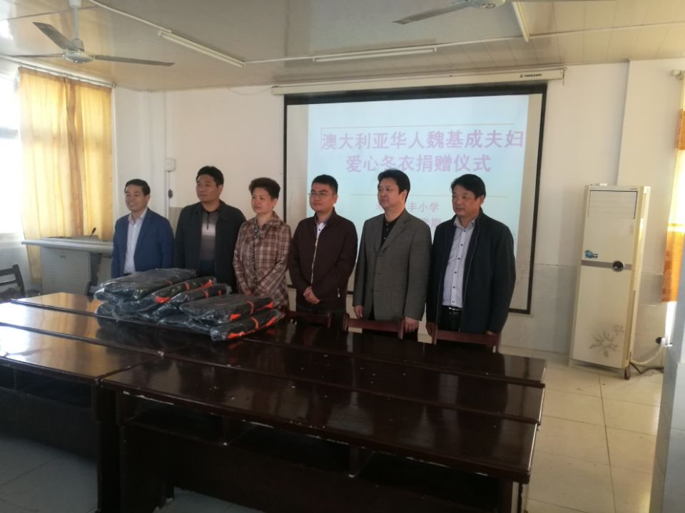 集團公司扶貧幫扶村壽縣安豐鎮(zhèn)甲貝村是重點貧困村,安豐小學位于安豐鎮(zhèn)甲貝村境內(nèi),在校學生2025人,貧困學生113人。安豐鎮(zhèn)黨委政府和集團公司駐村工作隊重視僑界資源,積極與市縣僑聯(lián)對接。2018年,在市僑聯(lián)的關(guān)心幫助下,爭取到澳大利亞籍華人魏基成夫婦基金會捐贈愛心冬衣192件,價值3萬余元。