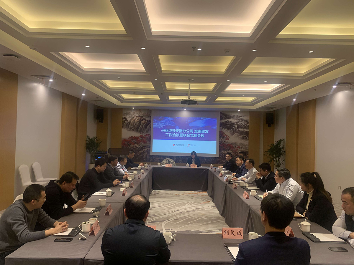 1月15日下午,興業(yè)證券安徽分公司黨委書記、董事長鄭天松率班子成員及有關部門負責人蒞臨建發(fā)集團,與集團公司開展工作洽談暨聯(lián)合黨建會議。公司黨委副書記、副董事長、總經(jīng)理宋道河及全體班子成員、有關部室負責人參加會議。