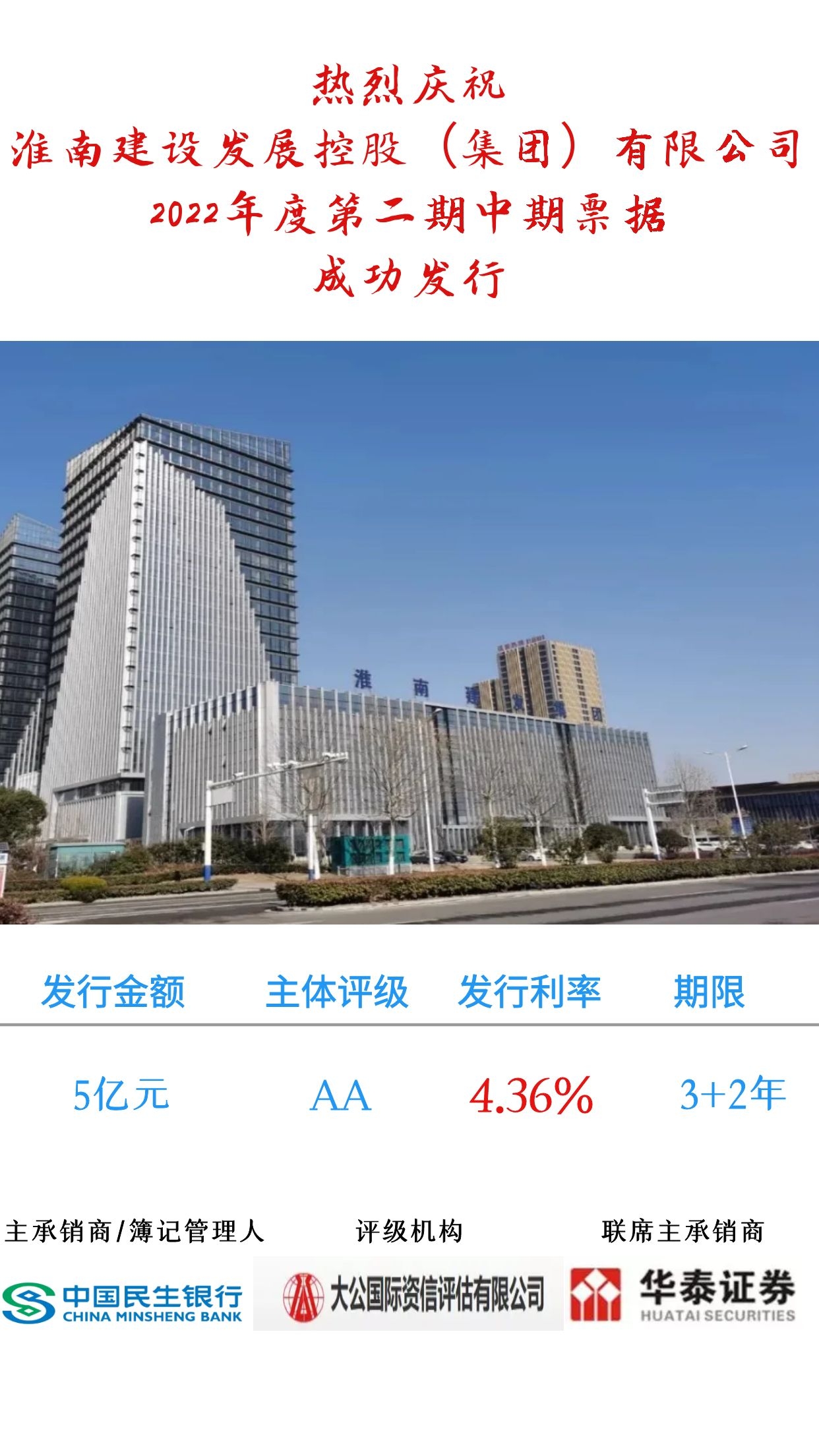 發(fā)行要素:22淮南建發(fā)MTN002、發(fā)行規(guī)模5億元、票面利率4.36%、認購倍數(shù)1.8倍。
