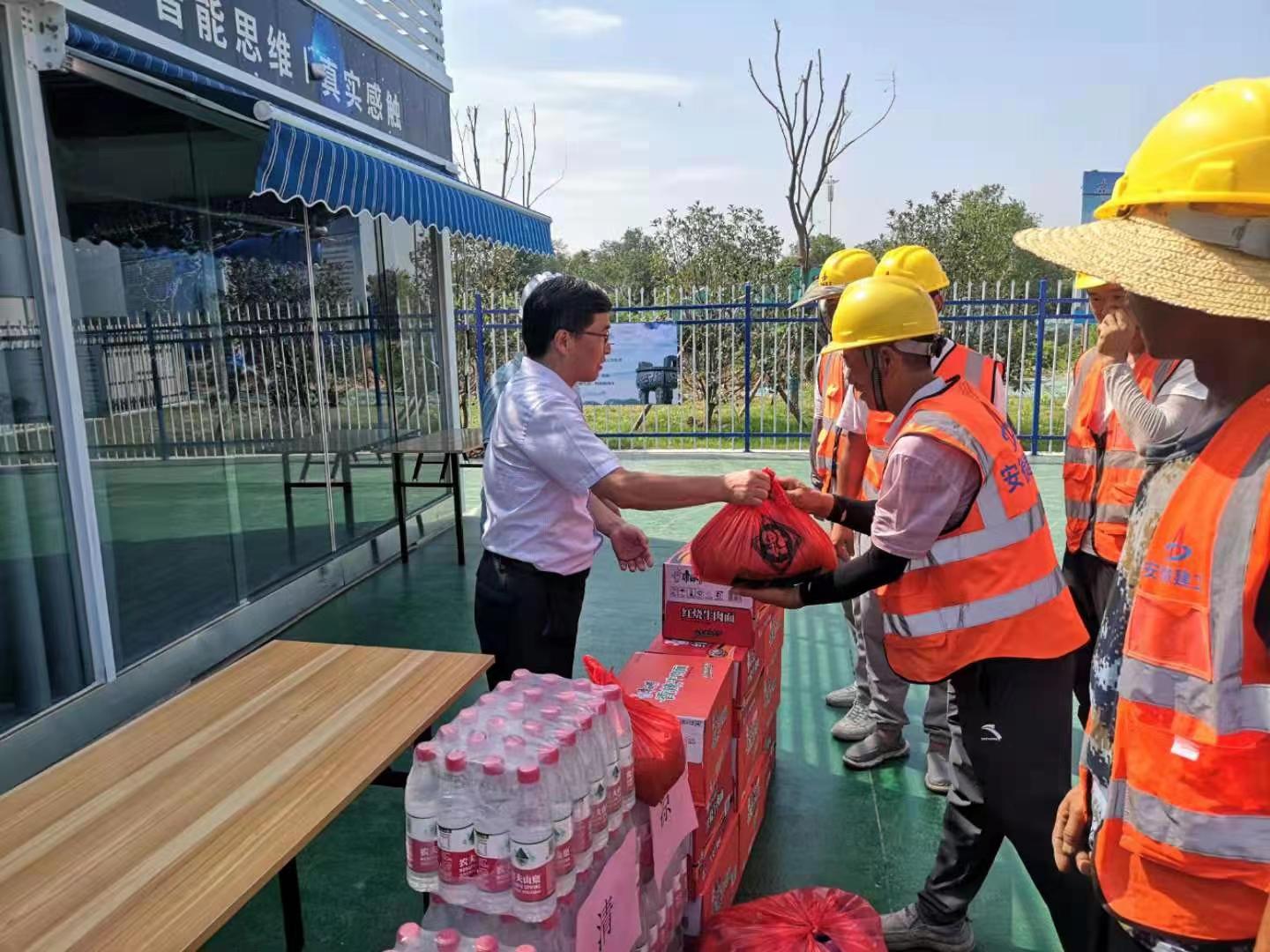宋道河一行先后來到淮南迎賓館二期、城市智慧泊車老市政府立體停車庫、西部采煤沉陷區(qū)綜合治理等項目施工現場,為烈日下奮戰(zhàn)在一線的職工帶來關懷和問候,并將防暑降溫物品送到他們手中,感謝他們在高溫酷暑下的付出和堅守。