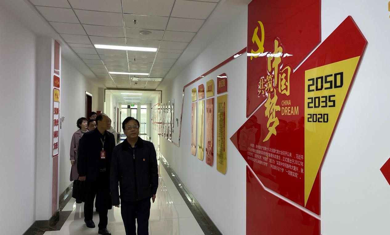 評(píng)審組一行查看黨建文化長(zhǎng)廊陣地建設(shè)情況