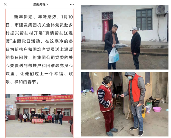 為切實(shí)強(qiáng)化黨建引領(lǐng),增強(qiáng)基層黨組織的政治功能和組織功能,加強(qiáng)黨內(nèi)激勵(lì)關(guān)懷幫扶。建發(fā)集團(tuán)黨委將黨內(nèi)政治生活與社會(huì)幫扶、關(guān)心關(guān)愛職工、企業(yè)發(fā)展充分融合,以“主題黨日活動(dòng)”為契機(jī),引導(dǎo)全體黨員始終堅(jiān)持亮身份、強(qiáng)服務(wù),充分發(fā)揮黨組織戰(zhàn)斗堡壘作用。在“春節(jié)”期間,組織黨員干部赴鄉(xiāng)村振興幫扶村、退休老黨員和老干部家中開展新春慰問主題黨日活動(dòng),并入選淮南先鋒網(wǎng)優(yōu)秀主題黨日活動(dòng)案例。