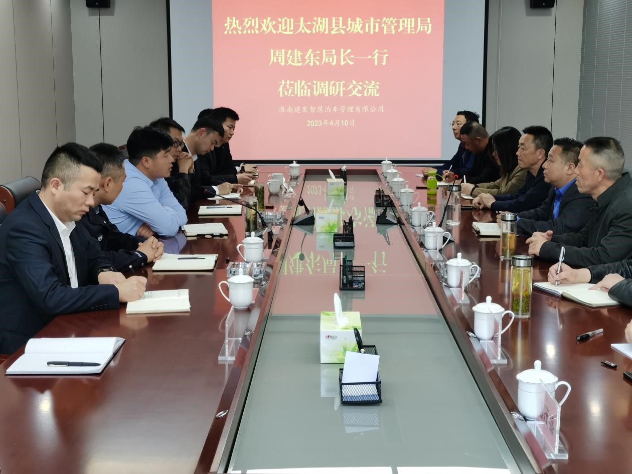 4月10日下午,太湖縣城市管理局局長周建東、副局長張勇軍等一行到訪我司進(jìn)行調(diào)研學(xué)習(xí),市住建局李昊、田區(qū)交警一大隊胡強(qiáng)、建發(fā)智泊張輝等進(jìn)行接待。