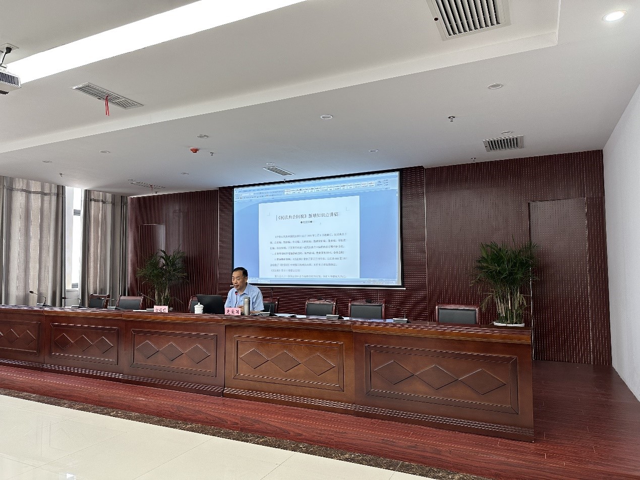 為深入學(xué)習(xí)貫徹習(xí)近平法治思想,切實(shí)提高運(yùn)用法治思維和法治方式解決問題的能力,大力推動(dòng)集團(tuán)公司全體人員尊法學(xué)法守法用法,提升法治意識(shí),建發(fā)集團(tuán)于6月30日上午開展了《中華人民共和國民法典》法律知識(shí)講座。本次講座邀請(qǐng)到公司法律顧問、安徽從法律師事務(wù)所主任史愛國律師來公司為全體干部員工作專題法律培訓(xùn)。會(huì)議由集團(tuán)公司副總經(jīng)理宮福頂主持,集團(tuán)公司全體干部員工參加了培訓(xùn)。