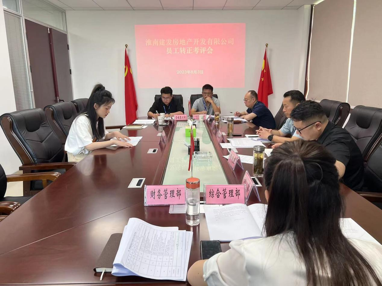 為貫徹落實集團公司關于人員招聘錄用相關要求,進一步規(guī)范公司新入職員工管理,2023年8月3日上午,淮南建發(fā)房地產開發(fā)有限公司在公司二樓會議室召開2023年度2月份新入職員工試用期滿轉正考評工作會議。會議由公司董事長兼總經理侯立新主持,公司董事陳曉東、監(jiān)事王娜、財務總監(jiān)劉睿等參加考評??荚u程序分為匯報轉正申請、上級領導點評、考核組成員評分三個部分,真正做到對每一位員工近半年來的工作表現(xiàn)作出全面客觀的評價。