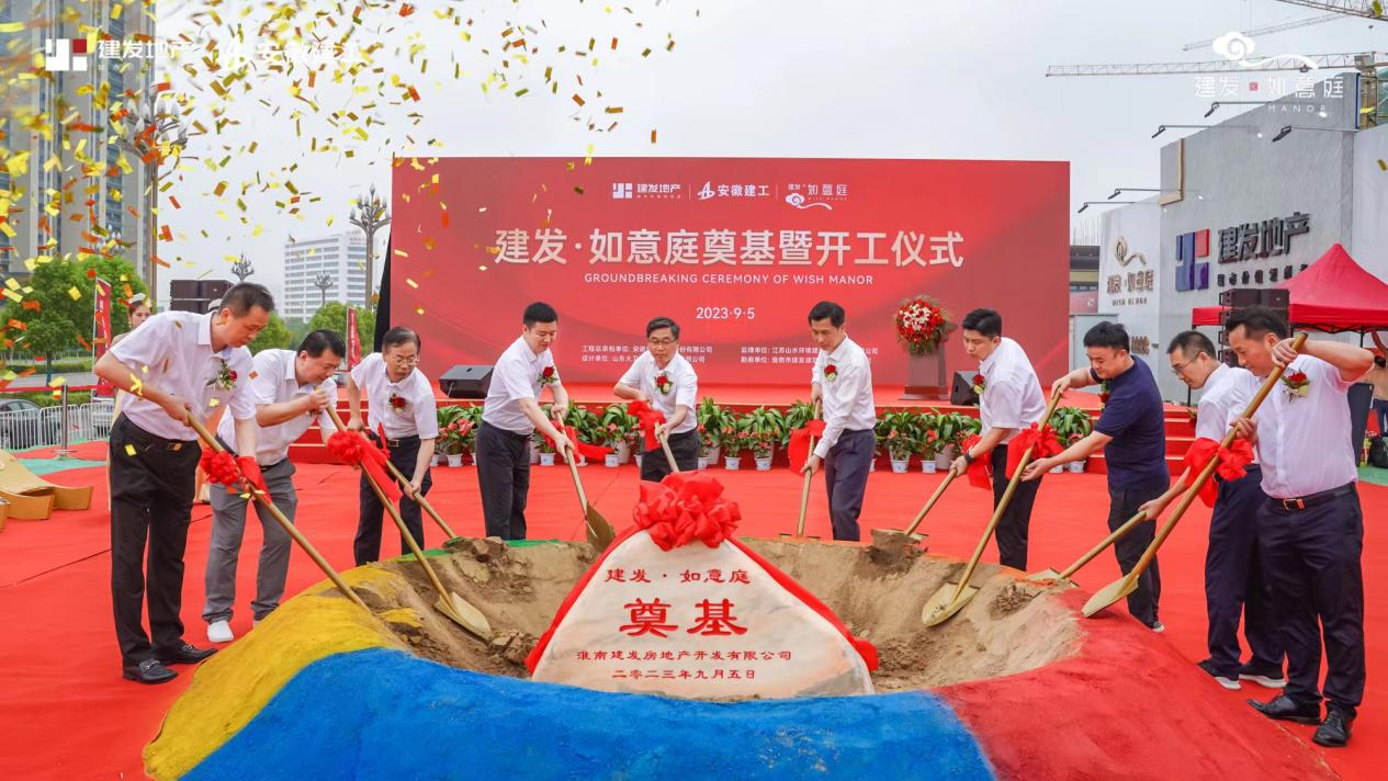 隨著全場(chǎng)倒計(jì)時(shí),上午11時(shí)8分奠基儀式正式啟動(dòng),八門金色禮炮齊鳴、五彩砂和彩帶隨風(fēng)飄揚(yáng),出席儀式的領(lǐng)導(dǎo)、嘉賓一起揮動(dòng)“金鏟”,為項(xiàng)目完成奠基培土。至此,建發(fā)·如意庭項(xiàng)目奠基暨開工儀式圓滿完成。這一刻,不僅標(biāo)志著建發(fā)·如意庭項(xiàng)目建設(shè)正式拉開大幕,對(duì)建發(fā)地產(chǎn)來說具有里程碑的意義,也定將在淮南建發(fā)集團(tuán)發(fā)展進(jìn)程中留下濃墨重彩的一筆。奮斗建工、擔(dān)當(dāng)建發(fā)、拼搏淮南,未來可期。