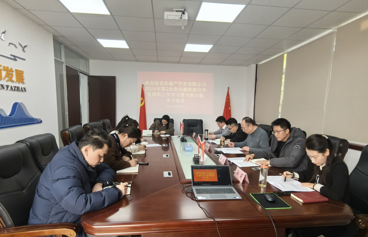 2月8日下午,淮南建發(fā)房地產(chǎn)開發(fā)有限公司在公司2樓會議室召開2024年度第2次黨風(fēng)廉政建設(shè)和反腐敗工作專題學(xué)習(xí)會議,公司全體員工參加。