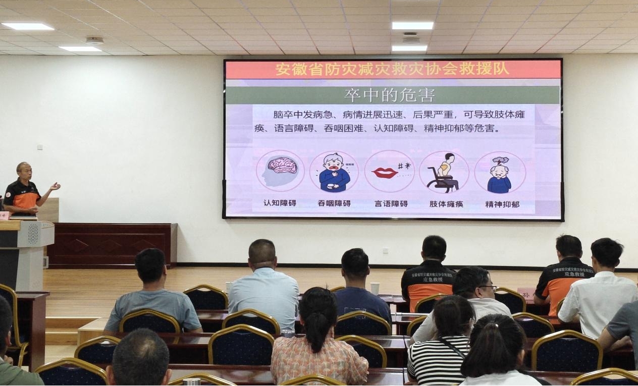 二是培訓考核,提高防范技能。邀請救援隊專家為職工干部講解腦梗心梗防治、防溺水、防觸電等急救常識,并安排現場實操互動,理論實際結合,在結束后對參會人員筆試考核,鞏固提高了職工自救互救能力。