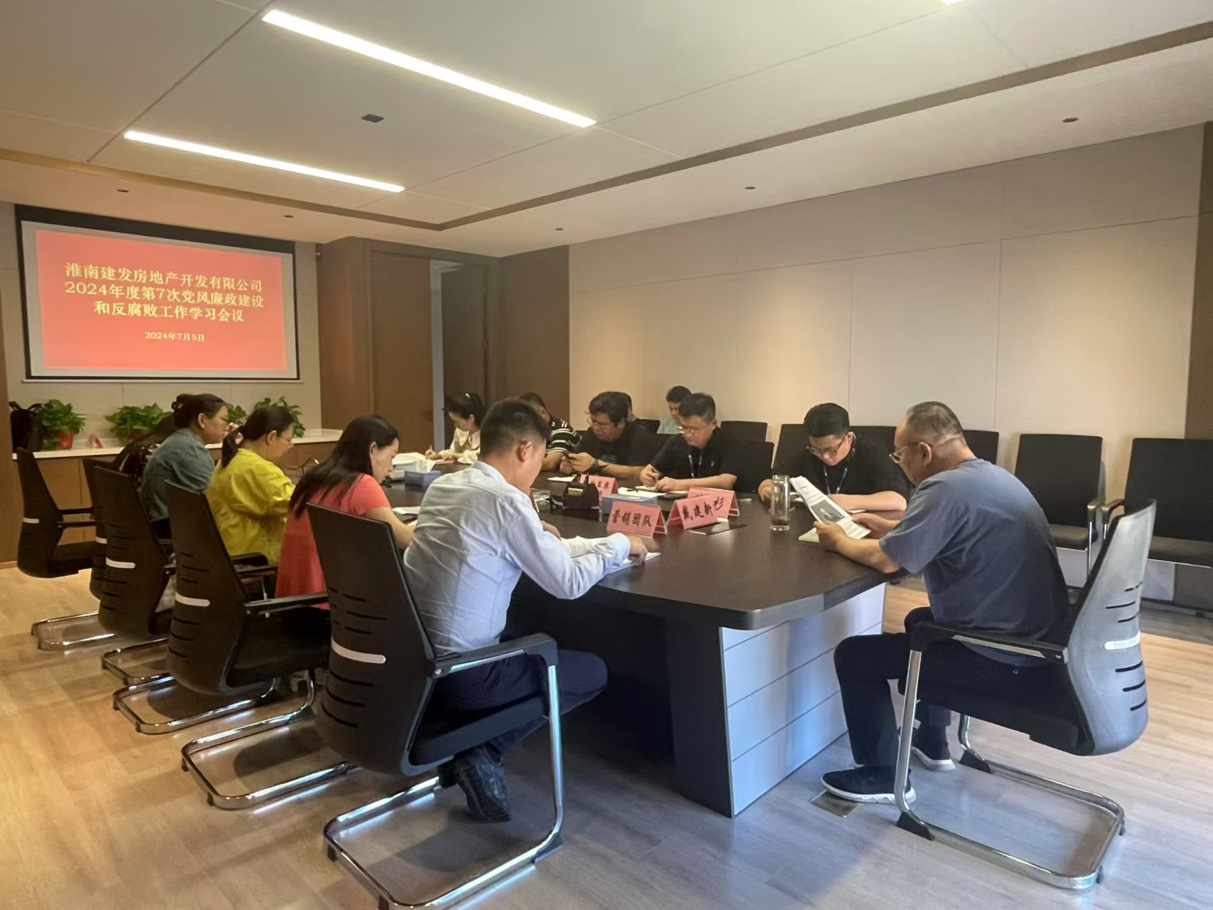 7月5日下午,淮南建發(fā)房地產(chǎn)開發(fā)有限公司在如意庭營銷中心2樓會議室召開2024年度第7次黨風(fēng)廉政建設(shè)和反腐敗工作學(xué)習(xí)會議,項目總經(jīng)理戴建新主持,公司全體員工參加會議。