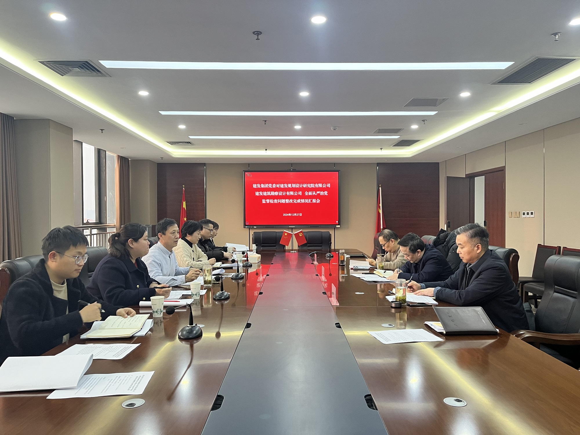 會議首先聽取了建發(fā)規(guī)劃設計研究院有限公司、建發(fā)建筑勘察設計有限公司全面從嚴治黨監(jiān)督檢查問題整完成情況匯報。