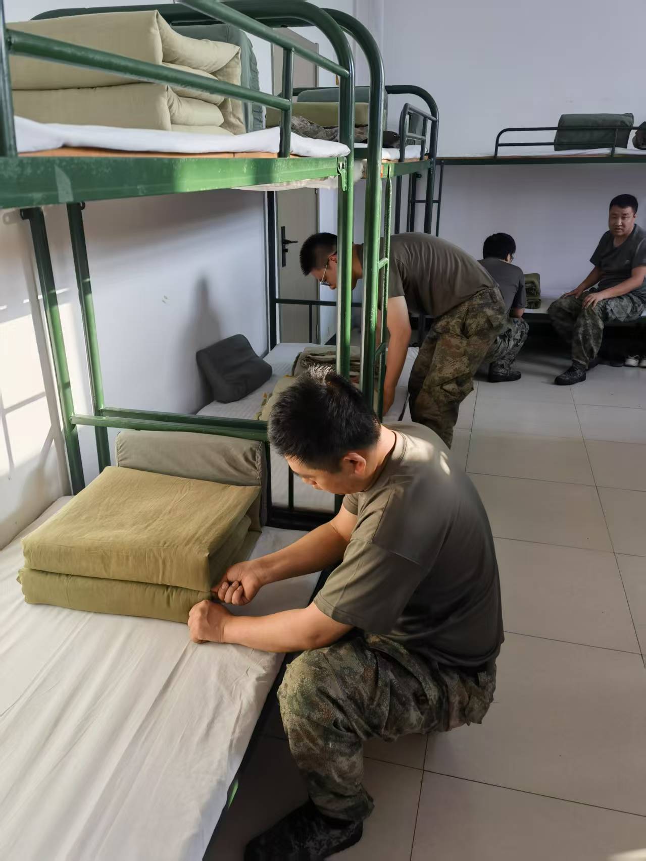 訓(xùn)練場上,職工們頂著炎炎烈日,認(rèn)真進(jìn)行軍姿、隊列等軍事技術(shù)訓(xùn)練,任汗水浸濕訓(xùn)練服,依然不怕苦累、一絲不茍;在課堂上,職工們專注聽講、認(rèn)真記錄,深入領(lǐng)會學(xué)習(xí)習(xí)近平強軍思想和軍事理論、戰(zhàn)備常識等知識;在宿舍里,職工們互幫互助、細(xì)致整理內(nèi)務(wù)。退伍老兵們主動發(fā)揮傳幫帶的優(yōu)良傳統(tǒng),主動指導(dǎo)同宿舍人員把被子疊成“豆腐塊”,把地面清掃得光潔如鏡。職工們以優(yōu)良的訓(xùn)練作風(fēng)和堅韌的意志品質(zhì)贏得了基地教官們的一致好評,在訓(xùn)練基地留下了蓬勃向上的建發(fā)風(fēng)采。