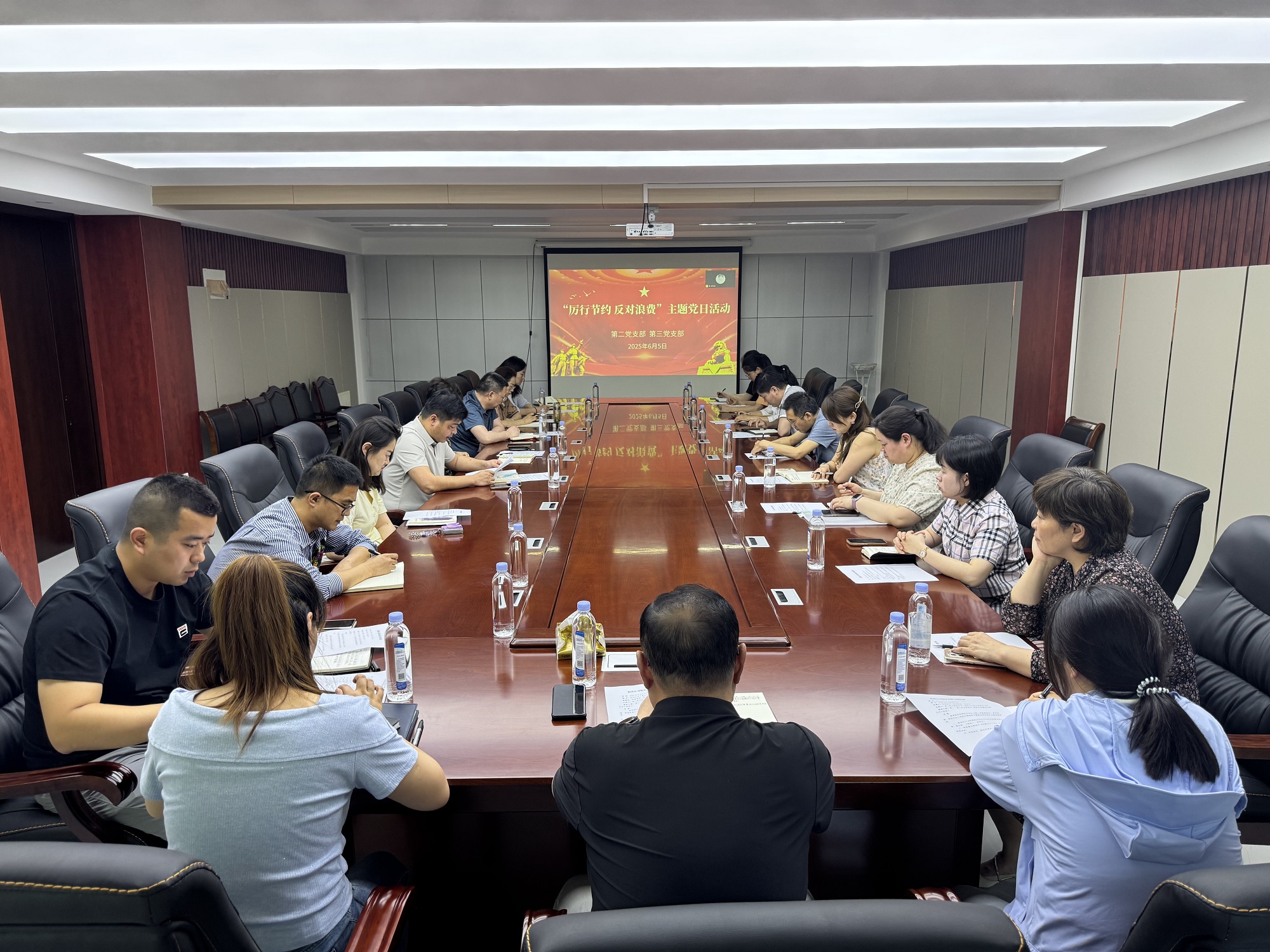 黨課結(jié)束后,兩個支部開展了聯(lián)合黨日活動,集體學(xué)習(xí)《黨政機關(guān)厲行節(jié)約反對浪費條例》,觀看警示教育片《反腐為了人民》,并結(jié)合學(xué)習(xí)研討、問題查擺、整改整治、開門教育等方面開展座談。