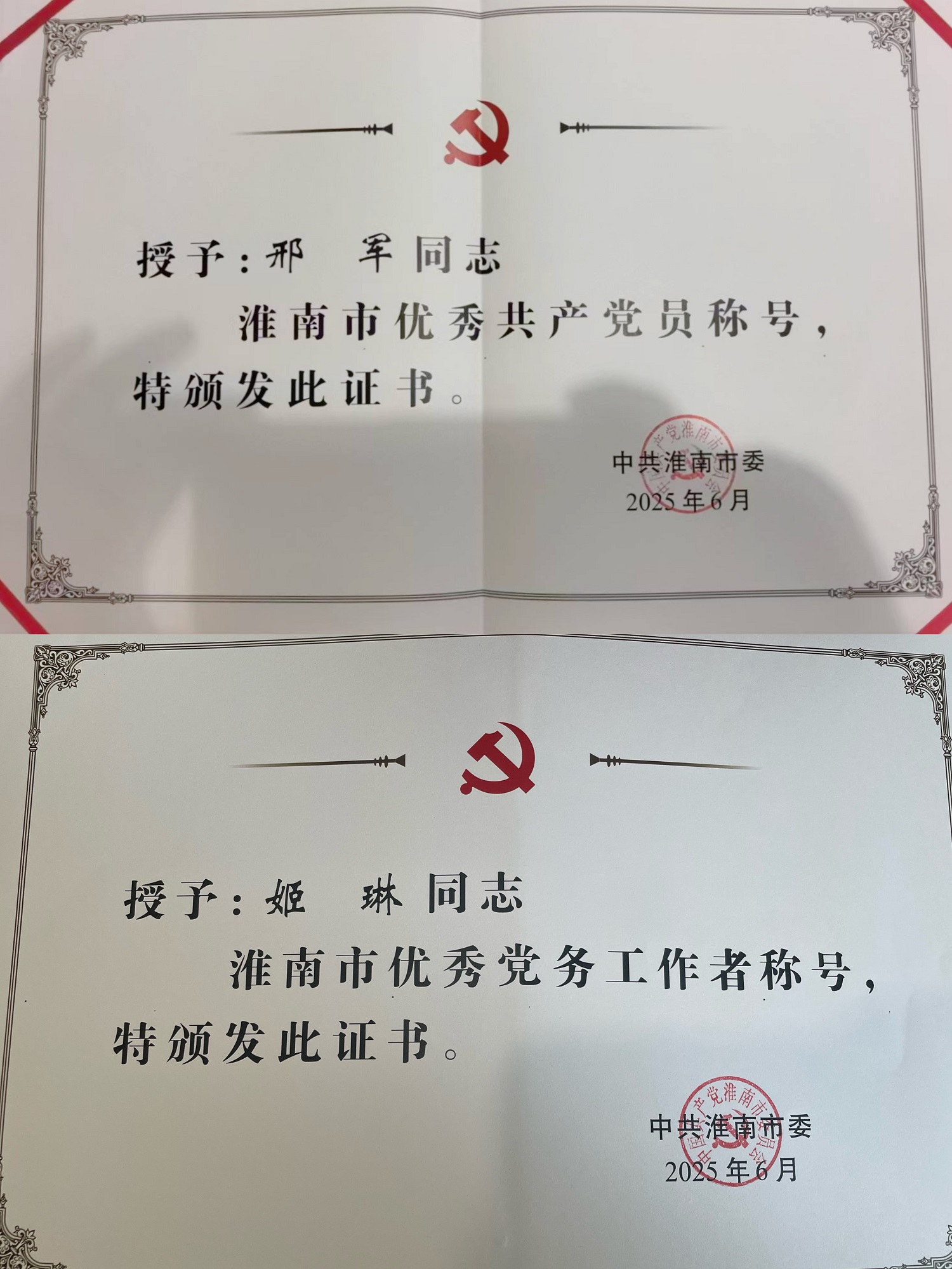 6月30日上午,中共淮南市委召開(kāi)全市優(yōu)秀共產(chǎn)黨員、優(yōu)秀黨務(wù)工作者、先進(jìn)基層黨組織表彰會(huì)議,會(huì)上集團(tuán)公司2名基層黨員受到表彰。其中,建發(fā)市政工程有限公司邢軍同志榮獲“市級(jí)優(yōu)秀共產(chǎn)黨員”稱號(hào),建發(fā)規(guī)劃設(shè)計(jì)研究院有限公司姬琳同志榮獲“市級(jí)優(yōu)秀黨務(wù)工作者”稱號(hào)。